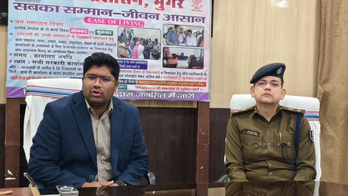 संवाद सहयोगी, मुंगेर। जनता की समस्याओं के समाधान और प्रशासन को जनोन्मुखी बनाने के उद्देश्य से जिले में ‘सबका सम्मान, जीवन आसान’ अभियान की शुरुआत सोमवार से की जा रही है। शनिवार को समाहरणालय में आयोजित प्रेस वार्ता में जिलाधिकारी निखिल धनराज निप्पाणीकर और पुलिस अधीक्षक सैयद इमरान मसूद ने अभियान से जुड़ी विस्तृत जानकारी दी।