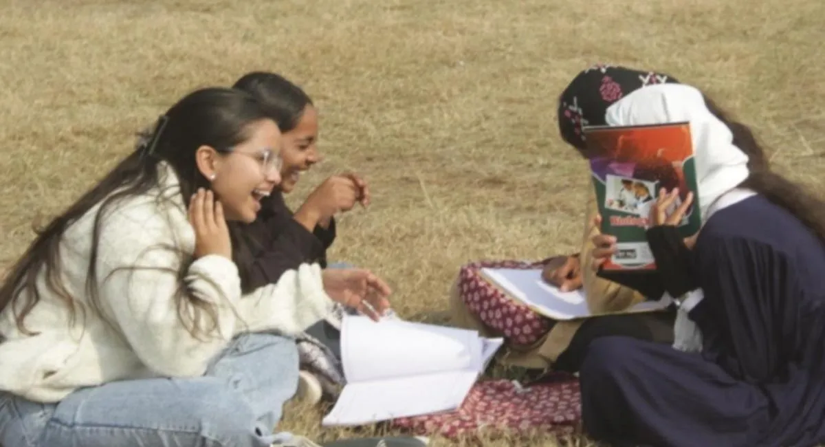 गोवि खेल मैदान में गुनगुनी धूप का आनंद लेती छात्राएं। जागरण