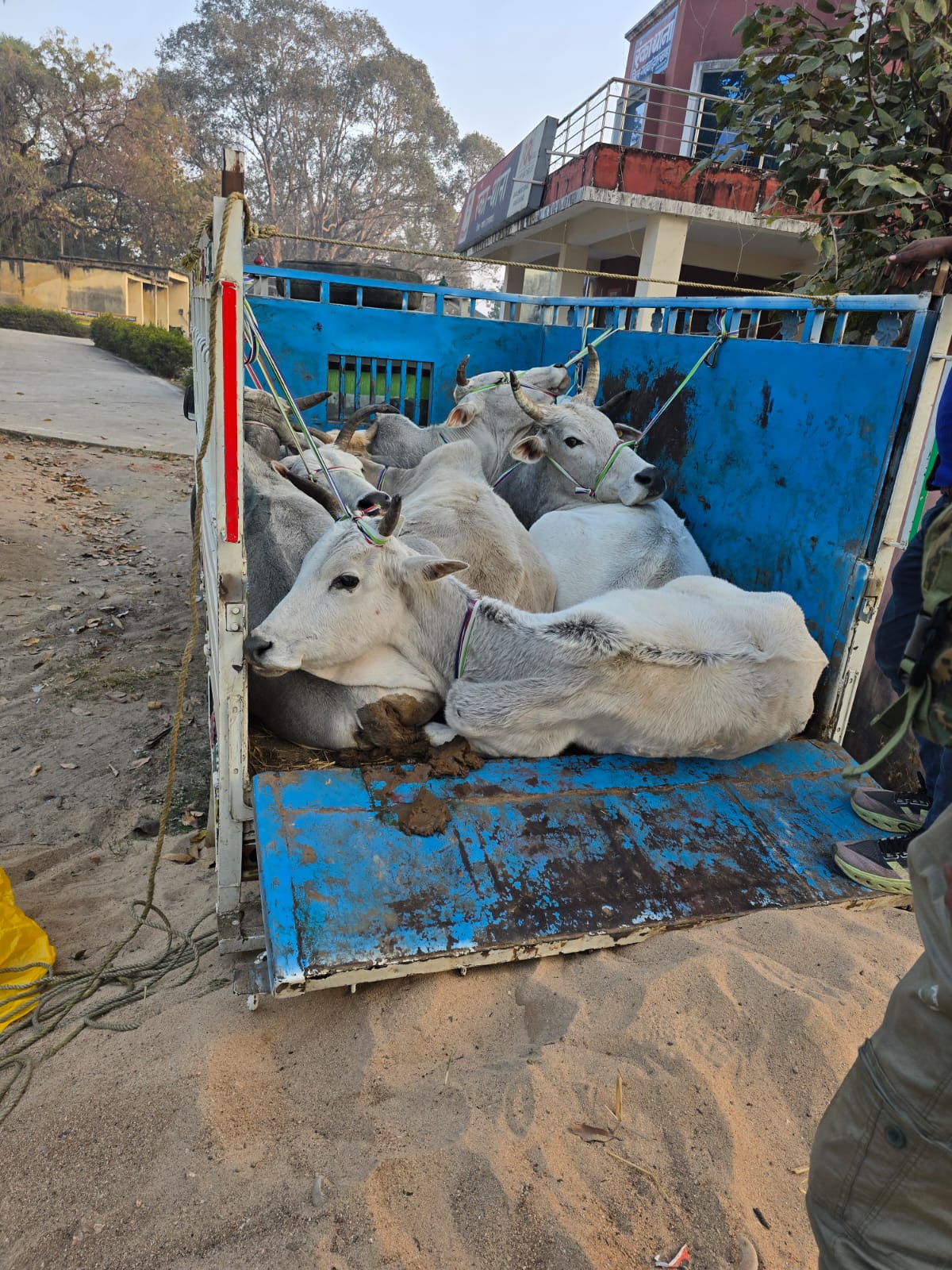 पुलिस की मुस्तैदी देख पिकअप का चालक वाहन को चेकिंग पॉइंट से करीब सौ मीटर पहले ही छोड़कर फरार हो गया। तलाशी के दौरान वाहन के भीतर सात गोवंश पाए गए, जिन्हें तस्करी के उद्देश्य से हाथ-पैर और सिर बांधकर बेहद अमानवीय तरीके से रखा गया था।