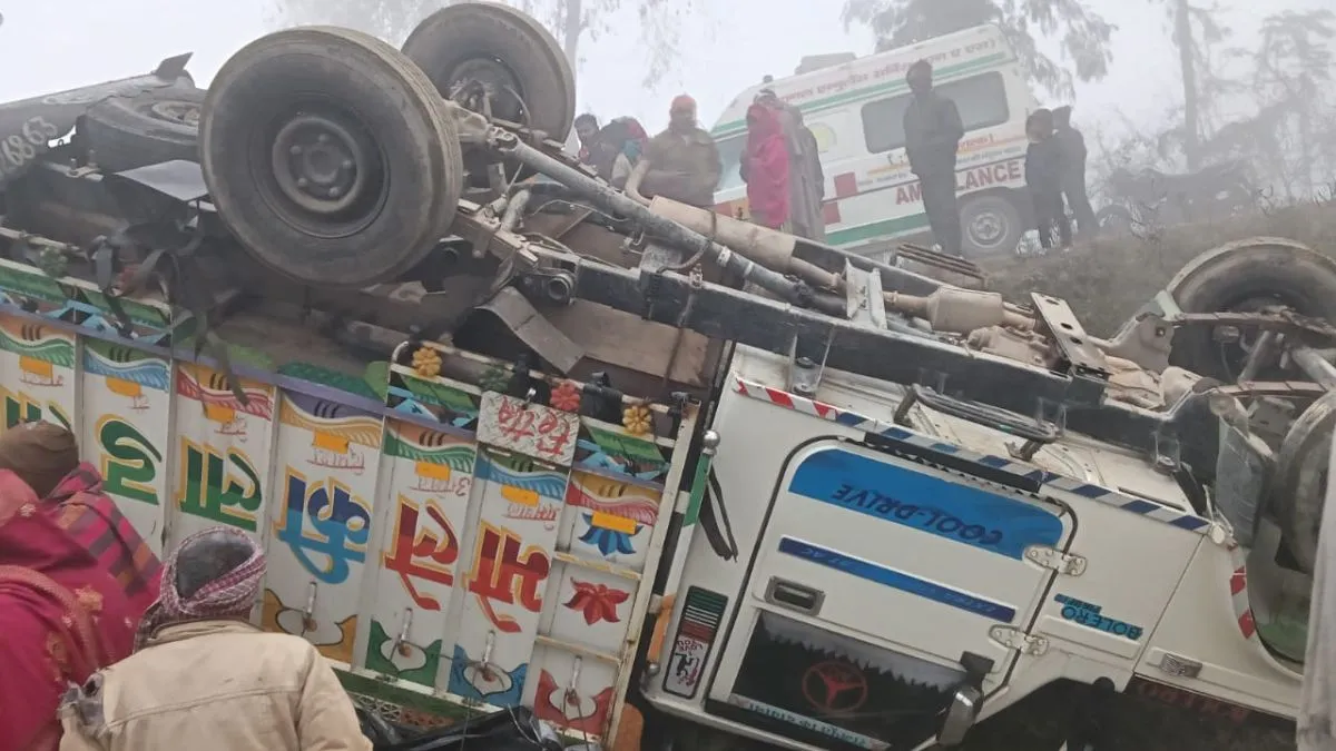 छह फीट गहरी खाई में गिरी मैक्स पिकअप, एक की मौत और चार घायल; अमरोहा में कोहरे के कारण हादसा