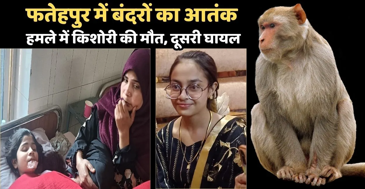 संवाद सहयोगी, बिंदकी(फतेहपुर)। यूपी में बंदरों का आतंक कम नहीं हो रहा है। कानपुर, फतेहपुर सहित कई जिलों में बंदरों के हमले से लोग परेशान हो रहे हैं। ऐसे में फतेहपुर में बंदरों के हमले से एक किशोरी की जान चली गई। जबकि दूसरी गंभीर रूप से घायल हो गई।