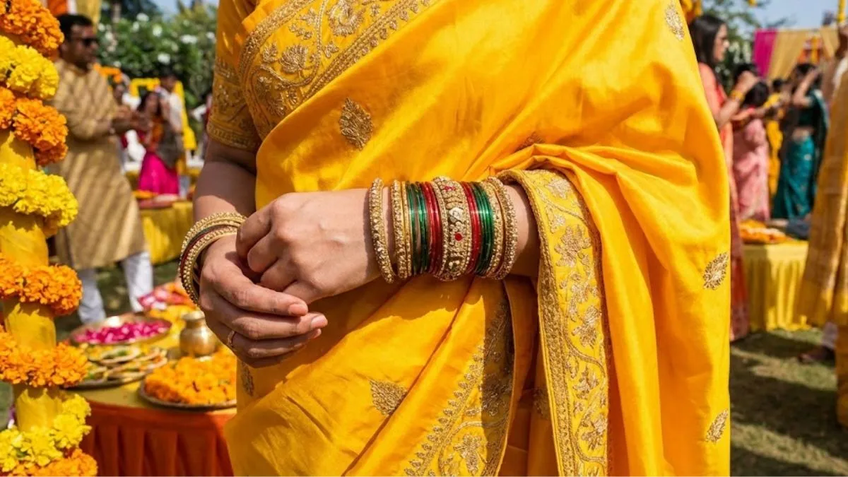 वसंत पंचमी पर पहन रही हैं पीली साड़ी? इन स्टाइलिश चूड़ियों के साथ करें अपने लुक को कंप्लीट (Image Source: AI-Generated)