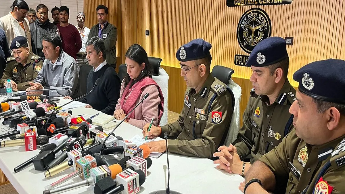 प्रयागराज मेला प्राधिकरण में मीडिया से मुख़ातिब मंडलायुक्त सौम्या अग्रवाल, पुलिस आयुक्त जोगेंद्र कुमार, डीएम मनीष कुमार वर्मा, एडिशनल पुलिस आयुक्त डाॅ.अजय पाल शर्मा, डीआइजी विजय ढुल, मेलाधिकारी ऋषि राज व एसपी मेला नीरज कुमार पांडेय। जागरण
