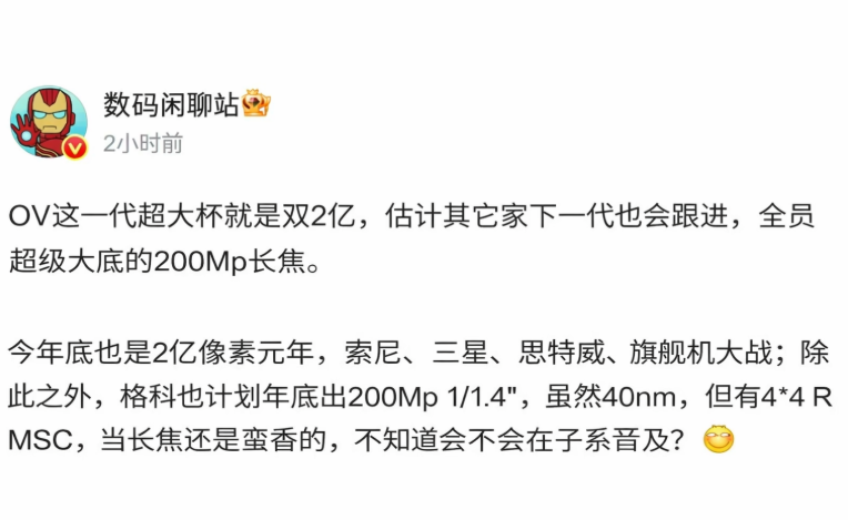 डुअल 200MP कैमरा होगा गेम चेंजर पॉपुलर चाइनीज टिपस्टर Digital Chat Station ने अपनी पोस्ट में लिखा है कि 2026 में लगभग सभी मोबाइल कंपनियां 200 मेगापिक्सल वाले स्मार्टफोन बाजार में उतारेंगी। यानी ये साल 200MP कैमरे का साल होगा। कैमरा सेंसर बनाने वाली सभी प्रमुख कंपनियों जैसे Sony, Samsung, SmartSens, OmniVision, और Galaxycore का पूरा फोकस इन दिनों स्मार्टफोन के लिए 200 मेगापिक्सल वाले एडवांस सेंसर बनाने पर है।