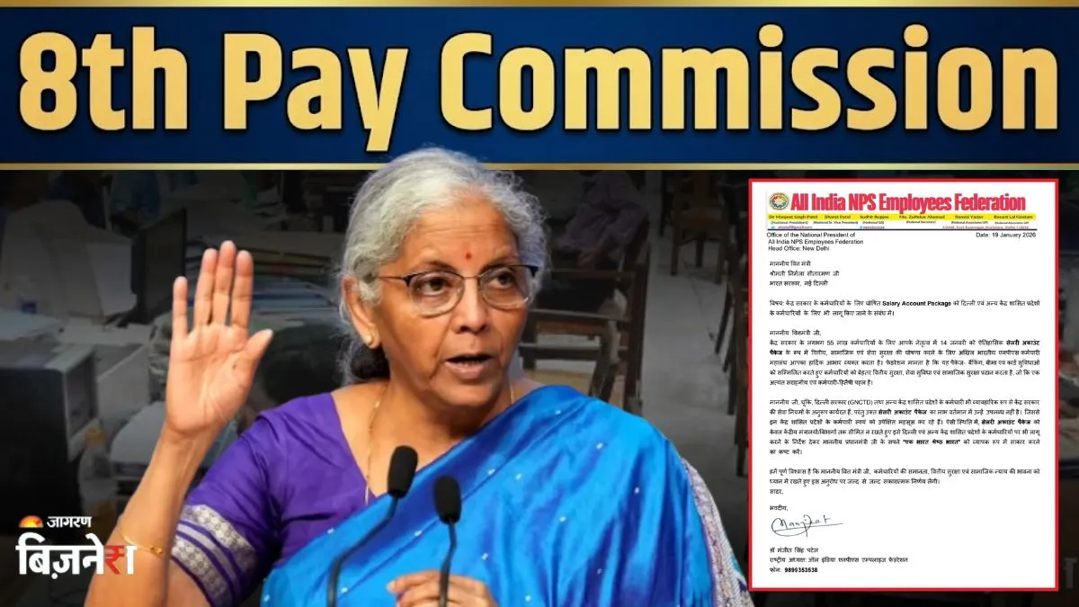 8th Pay Commission Update News: केंद्र सरकार के नए सैलरी अकाउंट पैकेज से बाहर रखे गए कर्मचारियों को लेकर नाराजगी तेज हो गई है। ऑल इंडिया एनपीएस इंप्लॉई फेडरेशन (All India NPS Employees Federation) ने वित्त मंत्री निर्मला सीतारमण (Nirmala Sitharaman) को पत्र लिखकर मांग की है कि दिल्ली समेत सभी केंद्र शासित प्रदेशों और सेंट्रल ऑटोनोमस बॉडीज के कर्मचारियों को भी यह सुविधा तुरंत दी जाए। फेडरेशन का कहना है कि करीब 2.5 लाख कर्मचारी इस पैकेज से वंचित हैं, जबकि वे केंद्र सरकार के ही नियमों के तहत सेवाएं देते हैं।
