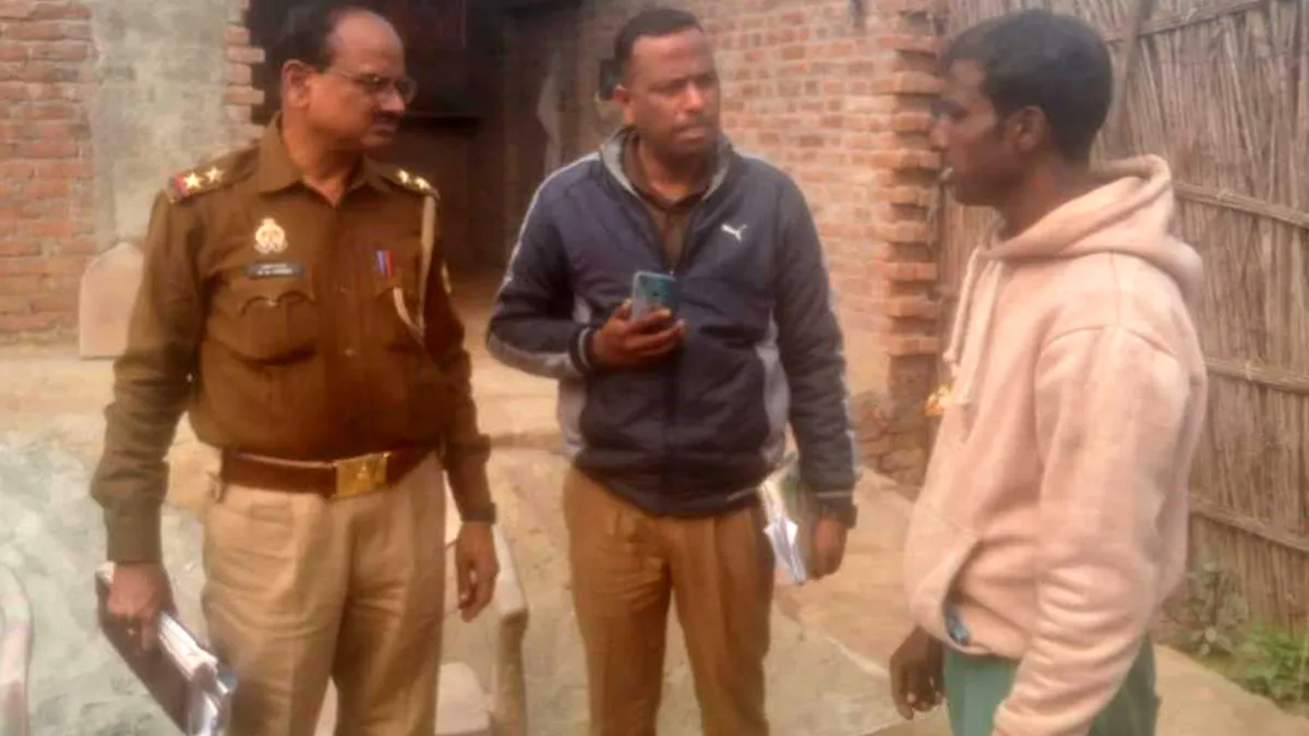 पूछताछ करते पुलिस और वन विभाग के अधिकारी