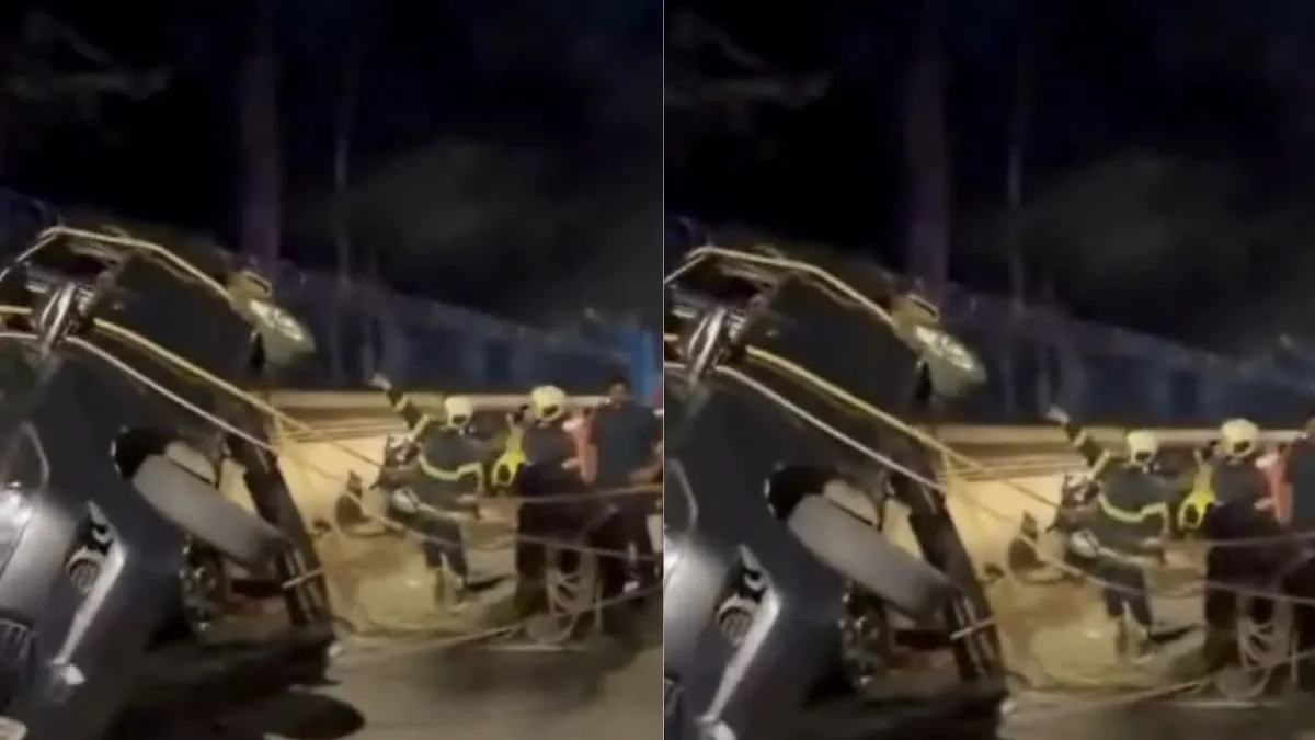 यह घटना सोमवार रात करीब 9 बजे हुई। इस घटना का एक वीडियो भी सोशल मीडिया पर वायरल हो गया है, जिसमें कुमार की गाड़ी सड़क पर पलटी हुई दिख रही है और अधिकारी बचाव अभियान चला रहे हैं। जो लोग घायल हुए हैं उन्हें इलाज के लिए अस्पताल में भर्ती कराया गया है।