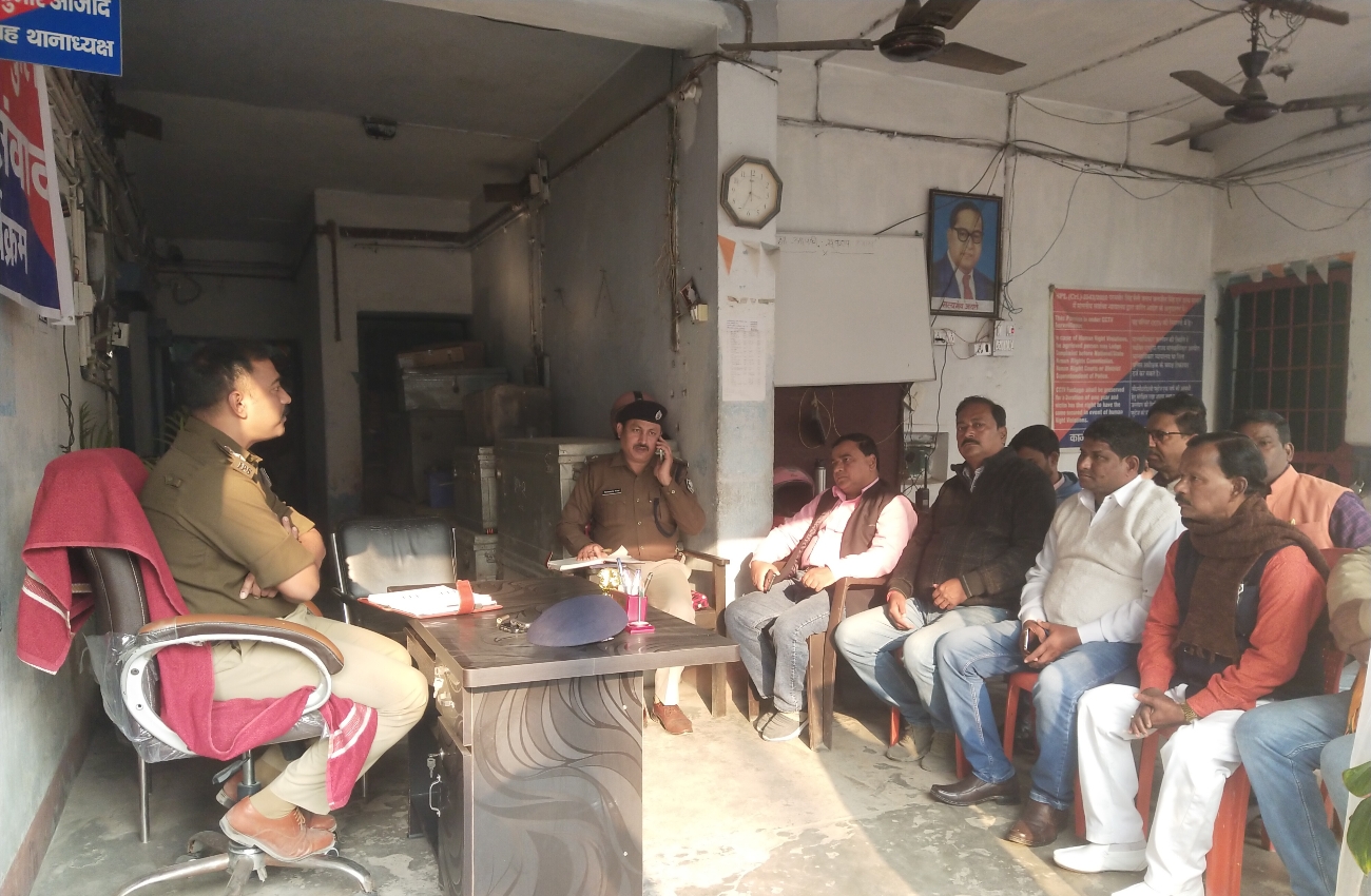 (काजीमोहम्मदपुर थाने में जनसंवाद करते सिटी एसपी। फोटो जागरण)