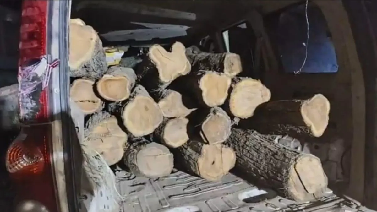वन रेंजर विजय सिंह ने बताया कि मंगलवार तड़के पीपली वन से खैर की लकड़ी काटकर ले जाने की सूचना पर एक कार का पीछा किया गया।