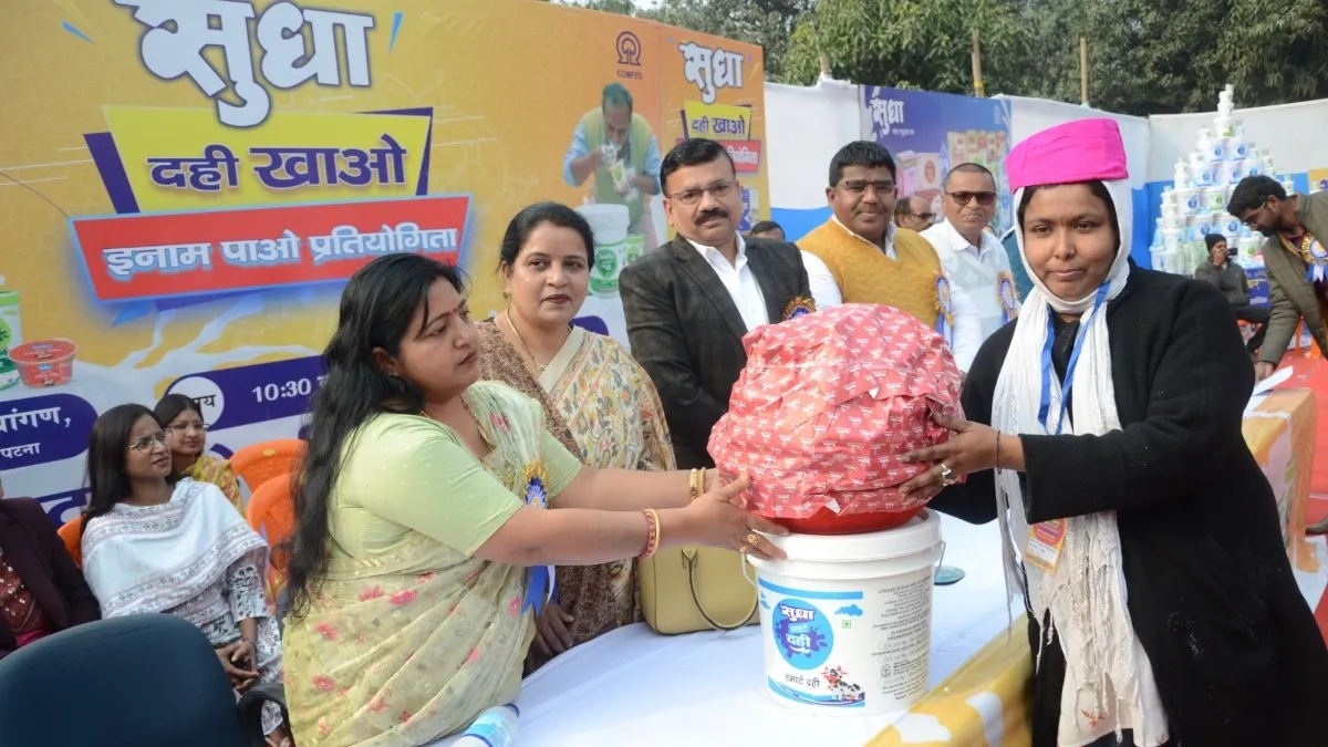 महिला वर्ग में बाजार समिति, पटना की सुनीता देवी ने 3 किलो 325 ग्राम दही खाकर द्वितीय और कंकड़बाग, पटना की ज्योत्सना कुमारी ने 3 किलो 305 ग्राम दही खाकर तृतीय पुरस्कार प्राप्त किया।