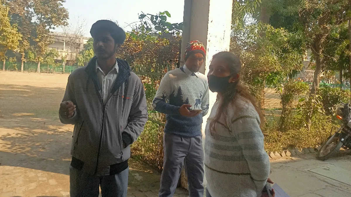 बाहर खड़े छात्र-छात्राएं