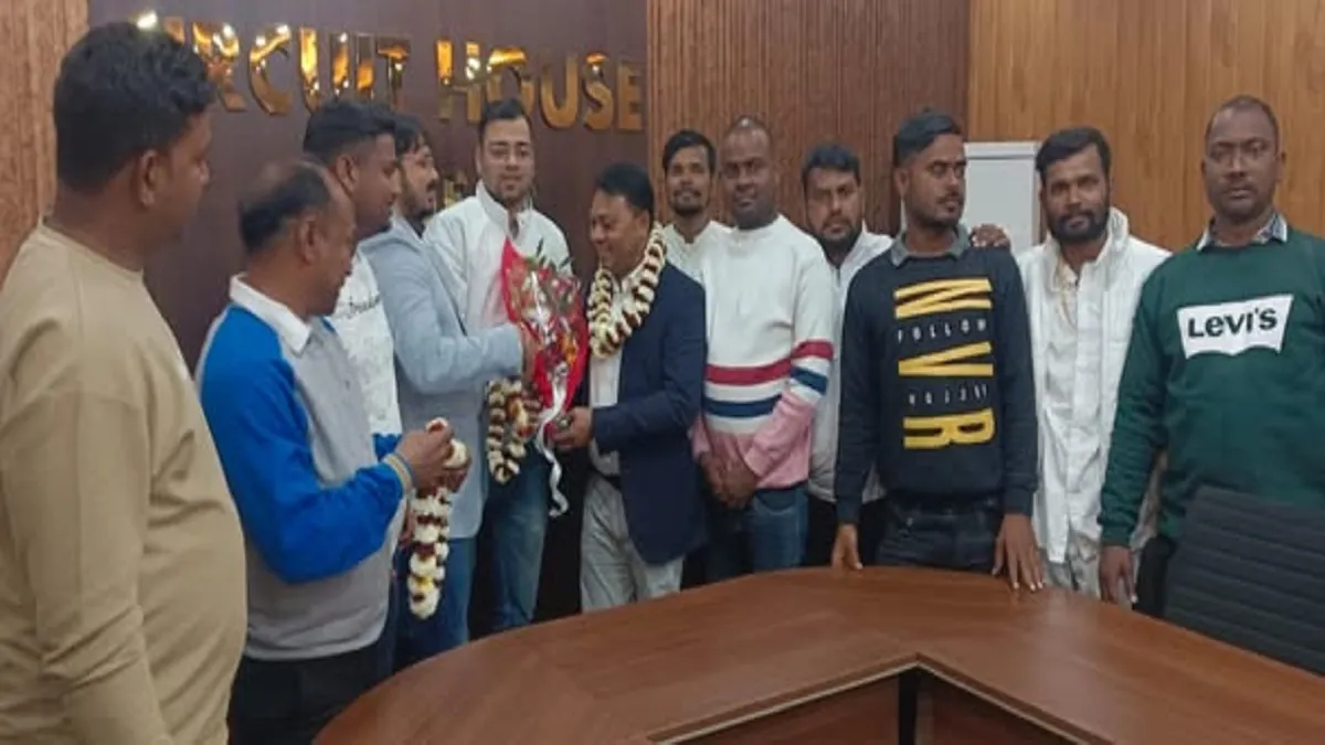 प्रत्याशी बनाए जाने के बाद प्रकाश महतो का स्वागत करते जेएलकेएम के नेता।