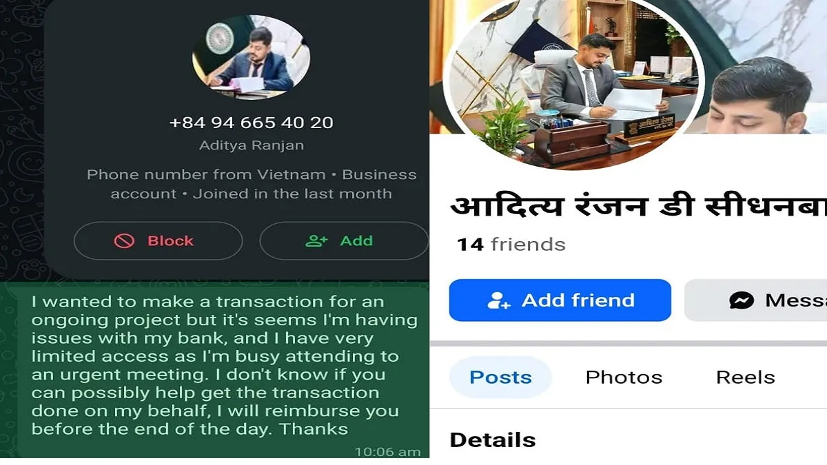 साइबर अपराधियों का दुस्साहस... धनबाद के डीसी आदित्य रंजन के फर्जी व्हाट्सएप और फेसबुक आइडी से लोगों से मांगे जा रहे पैसे