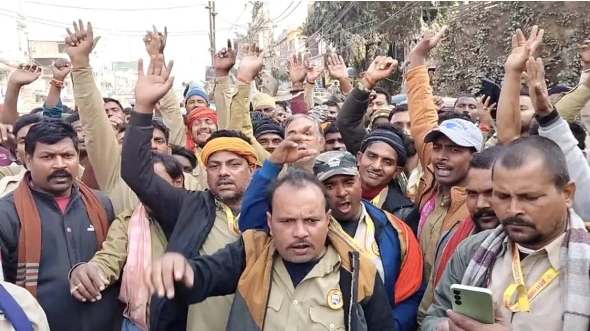 भागलपुर तिलकामांझी चौक के पास प्रदर्शन करते वाहन चालक