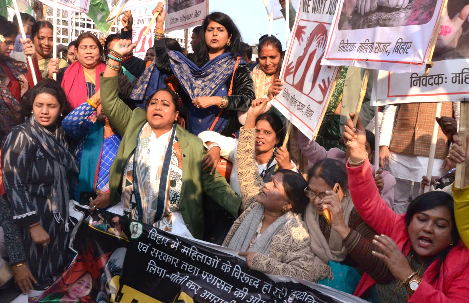 राज्य ब्यूरो, पटना। राजद के महिला प्रकोष्ठ द्वारा बुधवार को आक्रोश मार्च निकालकर आधी आबादी की सुरक्षा मेंं सरकार को विफल बताया गया। महिलाओं पर अत्याचार में अप्रत्याशित वृद्धि और शासन-प्रशासन पर अपराधियों को संरक्षण देने का आरोप लगाया।