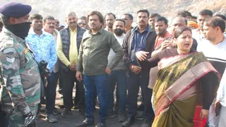 बीसीसीएल अधिकारियों के साथ मारपीट की सूचना के बाद एनटीएसटी परियोजना पहुंचे संजीव सिंह, झरिया विधायक रागिनी सिंह और अन्य।