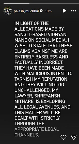 पलाश ने तोड़ी आरोपों पर चुप्पी