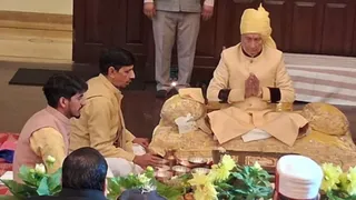 बदरीनाथ धाम के कपाट खुलने को लेकर राजदरबार नरेंद्रनगर में आयोजित धार्मिक अनुष्ठान में विधि-विधान से पूजन करते महाराजा मनुजेंद्र शाह। जागरण