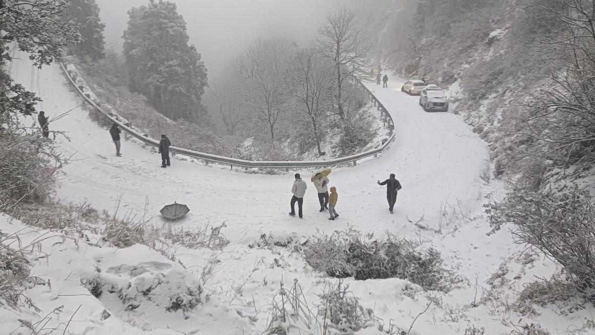 शहर की ऊंची चोटियों पर हिमपात शाम चार बजे शुरू हो गया था, जो देर रात तक जारी था। स्नोव्यू, नयना पीक, टिफिन टॉप, किलबरी और हिमालय दर्शन की चोटियों में हिमपात हुआ है।