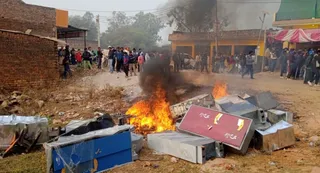 हत्यारोपितों का सामान भीड़ ने फूंका। जागरण