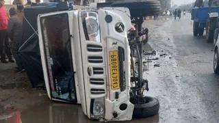 जालंधर में तेज रफ्तार कार की टक्कर से खड़ी बोलेरो पिकअप पलटी, बड़ा हादसा टला