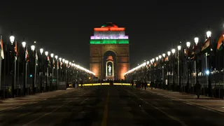 गणतंत्र दिवस के उपलक्ष्य में तिरंगा रोशनी में सराबोर इंडिया गेट। जागरण