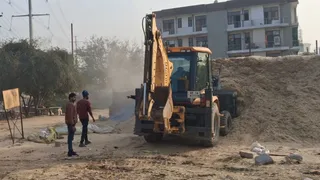 ताज हाईवे पर नगर निगम की भूमि से भूसा हटाता नगर निगम की जेसीबी मशीन। सौ. नगर निगम