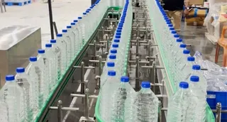 करखियांव एग्रो पार्क में मिनरल वाटर मैन्युफैक्चरिंग प्लांट से निकल रहा बोतल बंद पानी। जागरण