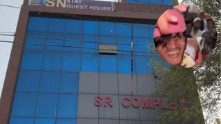 इसी गेस्ट हाउस में मारी गोलियां, इंसेट में मृतक।
