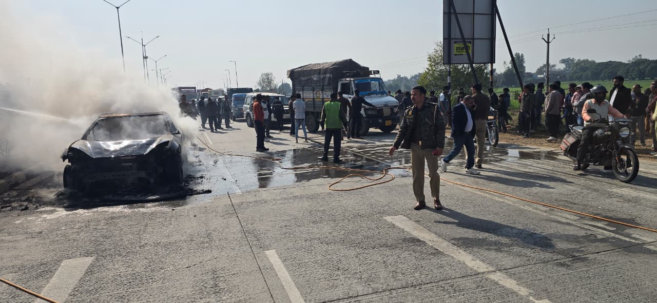 जागरण संवाददाता, हापुड़। हापुड़ में रविवार को एक दर्दनाक हादसा हुआ, जब एक चलती इलेक्ट्रिक कार में अचानक भयंकर आग लग गई। प्राथमिक जानकारी के अनुसार, अमन खरबंदा अपनी महिंद्रा कंपनी की इलेक्ट्रिक गाड़ी ( UP13U 7555) से बुलंदशहर से हापुड़ जा रहे थे, तभी कुराना टोल प्लाजा के पास उनकी कार में आग लग गई।
