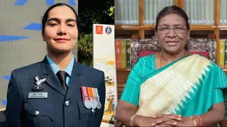फ्लाइट लेफ्टिनेंट अक्षिता धनखड़ और भारत की राष्ट्रपति द्रौपदी मुर्मू।