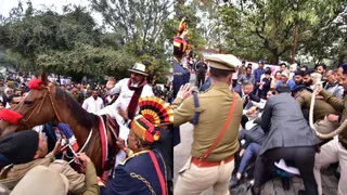 राहगीरी उत्सव के दौरान घोड़े से गिरे सीएम मोहन यादव, सुरक्षाकर्मियों ने संभाला।