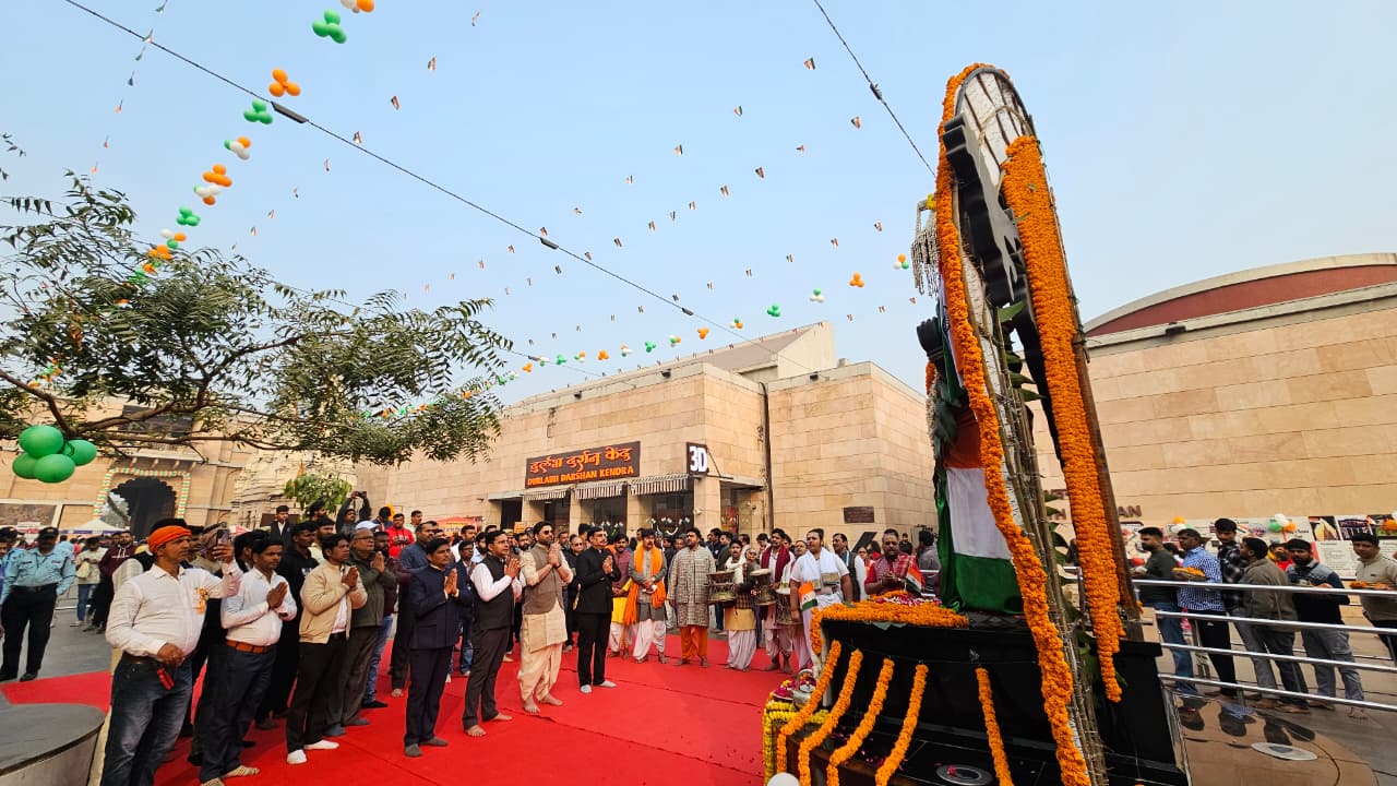 इस अवसर पर डमरू वादन एवं शास्त्रीगणों द्वारा स्वस्तिवाचन के साथ तिरंगा ध्वज पर पुष्पांजलि अर्पित की गई। इसके उपरांत, भारत माता एवं राष्ट्रीय ध्वज की विधिवत आरती संपन्न हुई।
