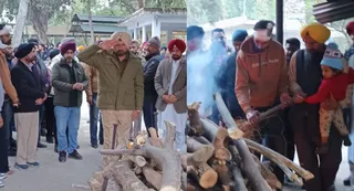 नाभा के अलोहरां गेट स्थित शमशान घाट में मृतक हेड कॉन्स्टेबल अमनदीप सिंह के सवा साल के बेटे कंवर सिंह ने अपने चाचा नवदीप सिंह के साथ अपने पिता की चिता को अग्नि दी। |