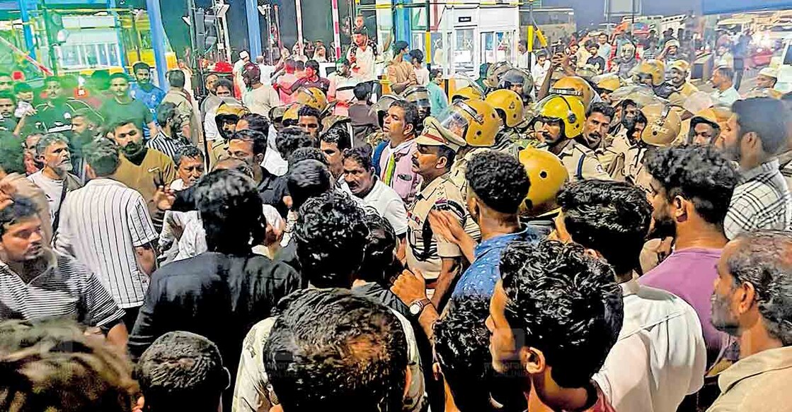 സമരഭൂമിയായി ആരിക്കാടി: രാത്രി സംഘർഷം; ടോൾ ബൂത്തിൽനിന്ന് ജീവനക്കാരെ ഇറക്കിവിട്ടു, പൊലീസുമായി ഉന്തുംതള്ളും