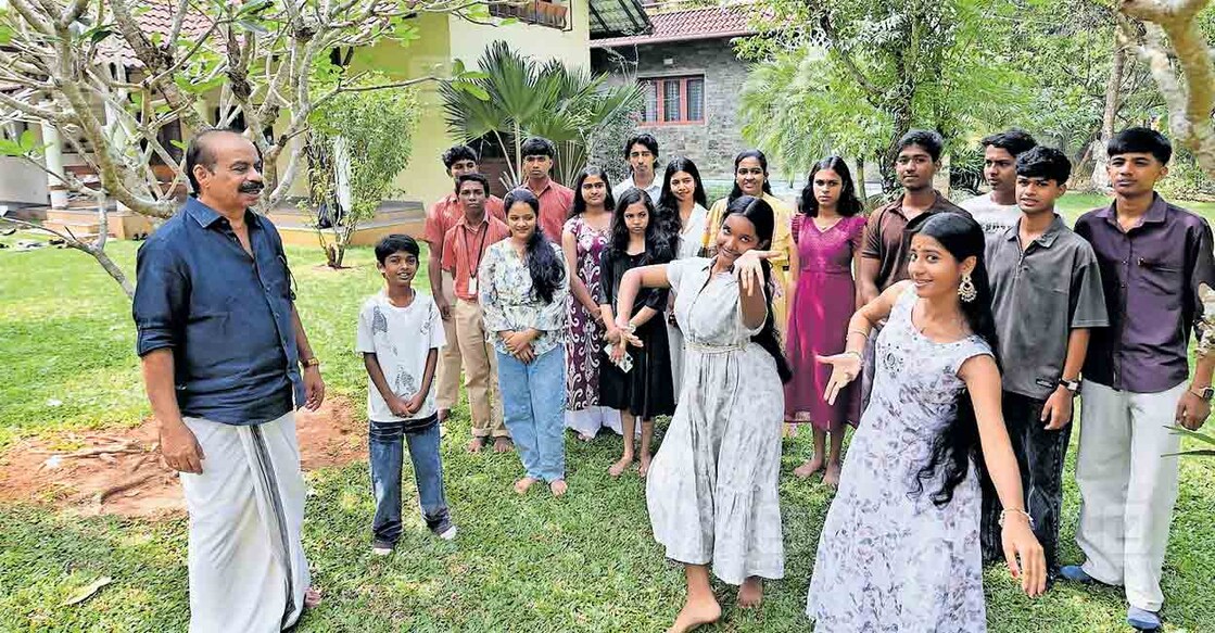 Sathyan Anthikad\“s house became the center of attraction for school students. The event was organized by Malayala Manorama for school children. The students interacted with Sathyan Anthikad and his family, including his wife Nimmi and sons Akhil Sathyan and Anoop Sathyan. |