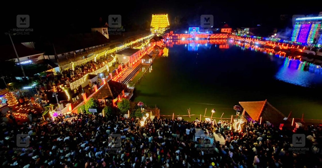 വൈകിട്ട് ആറരയോടെ നിലവിളക്കിൽ ആദ്യ ദീപം തെളിച്ചു. പിന്നാലെ ശീവേലിപ്പുരയുടെ ചുമരുകളിലെ സാലഭഞ്ജികകൾ, ശ്രീകോവിലിനുള്ളിലെ വിവിധ മണ്ഡപങ്ങൾ, ക്ഷേത്രത്തിനുൾവശം, മതിലകത്തിനു പുറത്തെ ചുമരുകൾ എന്നിവിടങ്ങളിലും ദീപങ്ങൾ തെളിച്ചു. ഇടിഞ്ഞിലുകളിലും എണ്ണത്തിരി വിളക്കുകളിലും ദീപം തെളിച്ച ശേഷം വൈദ്യുതിദീപങ്ങളും മിഴി തുറന്നപ്പോൾ ശ്രീപത്മനാഭസ്വാമി ക്ഷേത്രം പ്രഭാപൂരിതമായി.
