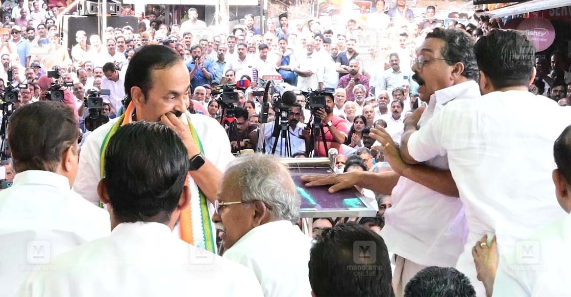 Kozhikode witnessed a tussle between leaders at a Congress rally, with Shafi Parambil MP and DCC Secretary Pramod Kakkatil clashing over the order of speeches, leading to confusion and controversy.