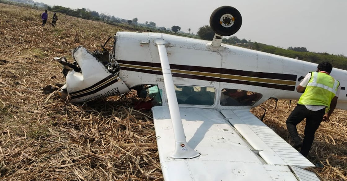 നിയന്ത്രണം നഷ്ടമായ വിമാനം പാടത്തു വീണപ്പോള്‍ മൂന്നു കഷ്ണമായി വേർപ്പെട്ടു. കലബുറഗിയിൽ നിന്ന് ബെലഗാവിയിലേക്ക് പറക്കുകയായിരുന്നു പരിശീലന വിമാനം . പരുക്കേറ്റവരെ ആശുപത്രിയിൽ പ്രവേശിപ്പിച്ചു. റെഡ് ബേർഡ് ഫ്‌ളൈയിങ് ട്രെയിനിങ് അക്കാദമിയുടെ വിമാനമാണ് തകർന്നത്.
