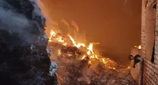 काबड़ी रोड पर वेस्ट कपड़े के गोदाम में आग (फोटो: जागरण)