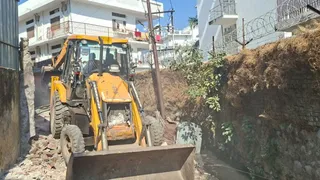 चंद्रेश्वर नगर में सरकारी जमीन में बने मकान को ध्वस्त करती नगर निगम की जेसीबी। जागरण