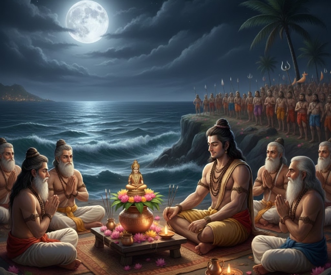 विजया एकादशी का संबंध त्रेतायुग से है। जब रावण ने माता सीता का हरण कर लिया था, तब भगवान श्री राम अपनी वानर सेना के साथ समुद्र तट पर पहुंचे। विशाल समुद्र को पार करना सेना के लिए एक बड़ी चुनौती थी। तब लक्ष्मण जी ने श्री राम को सुझाव दिया कि पास ही में ऋषि बकदाल्भ्य का आश्रम है, उनसे कोई उपाय पूछना चाहिए।