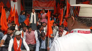 मुंगेर विश्वविद्यालय की सीनेटउ के दौरान प्रदर्शन करते अभाव‍िप कार्यकर्ता।