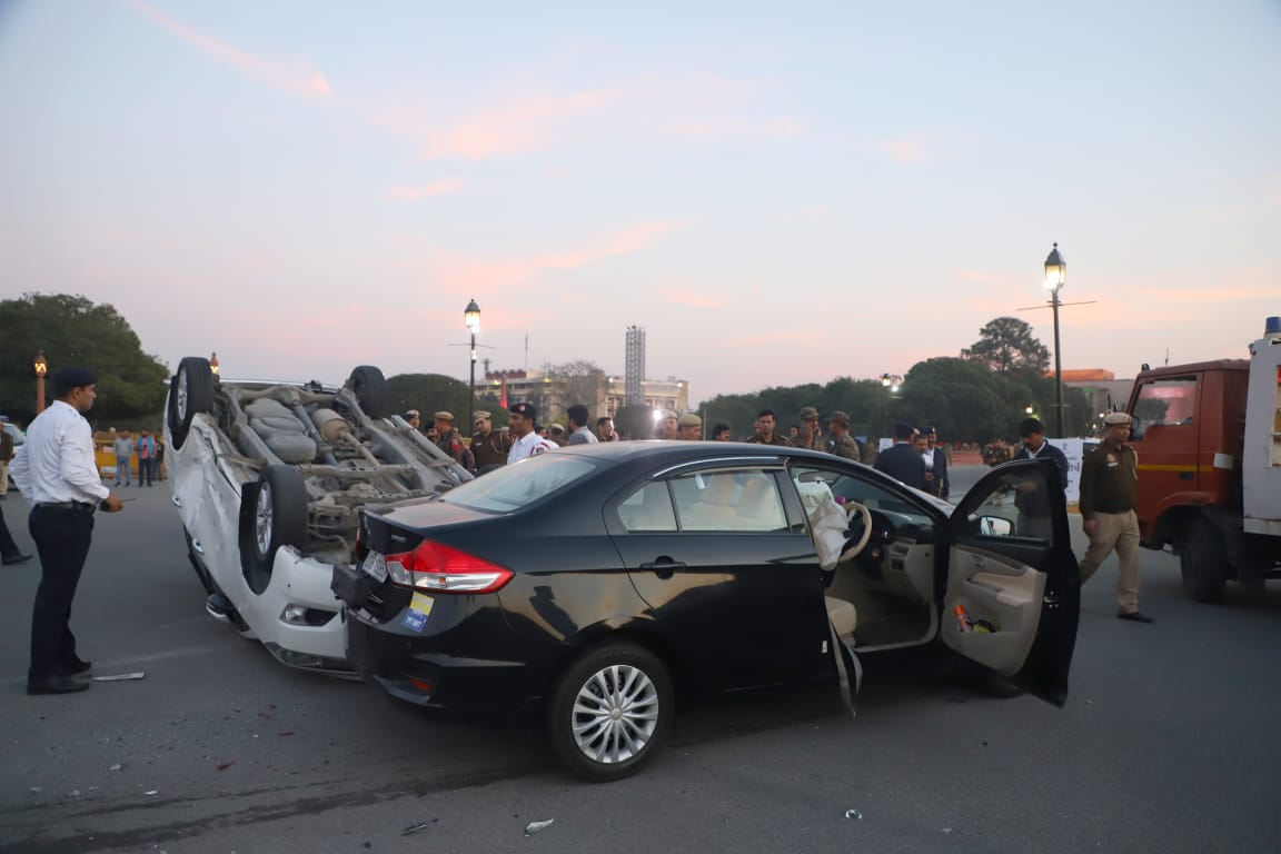 पुलिस के अनुसार, शुक्रवार शाम 6:12 बजे कर्तव्य पथ थाना पुलिस को सूचना मिली कि विजय चौक के पास दो गाड़ियों के बीच टक्कर हुई है। सूचना मिलते ही पुलिस टीम मौके पर पहुंची। वहां देखा गया कि एक सफेद रंग की गाड़ी पलटी हुई हालत में सड़क के बीच पड़ी थी, जबकि दूसरी गाड़ी बुरी तरह क्षतिग्रस्त अवस्था में किनारे खड़ी थी।