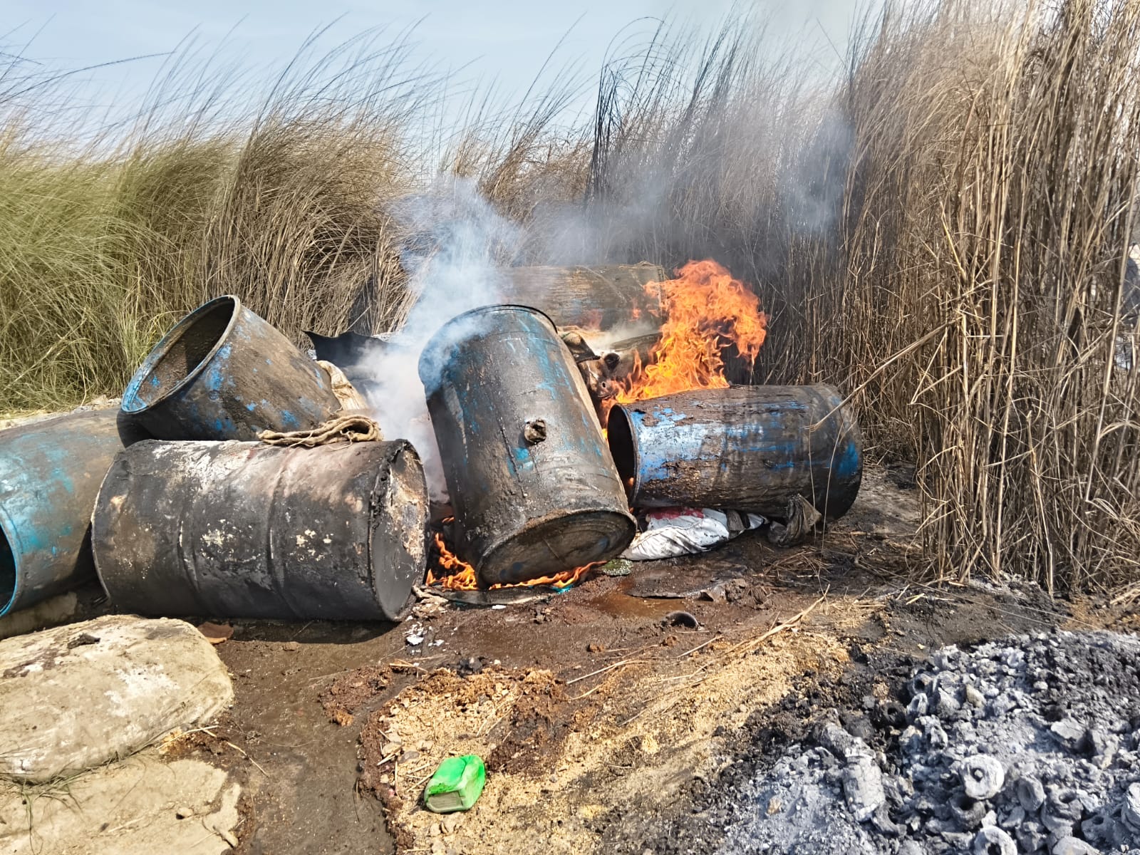 राघोपुर के सुकुमारपुर दियारा में 13 देशी शराब की भट्टियां ध्वस्त