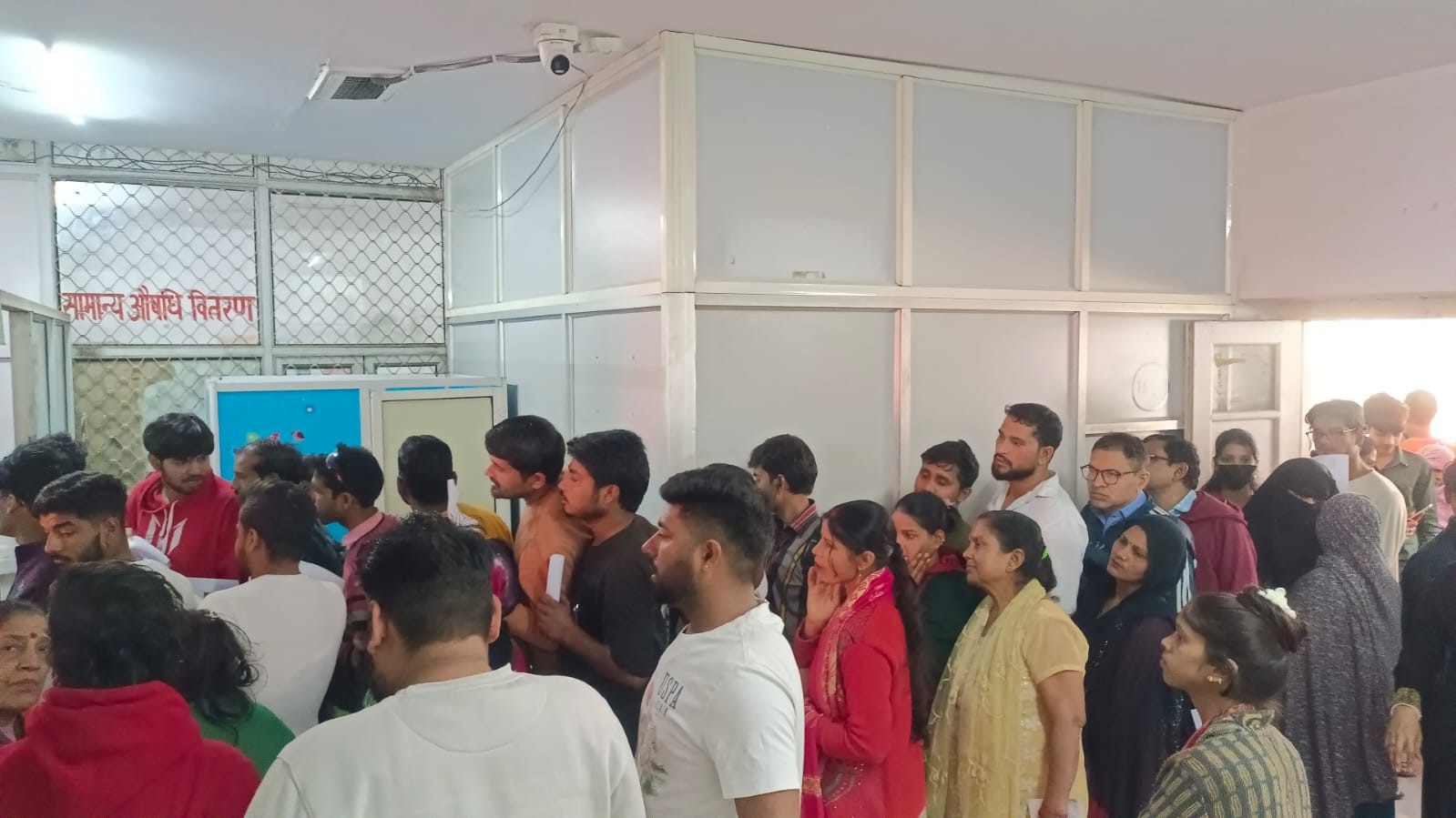 एमएमजी जिला अस्पताल में पर्चा बनानेके लिए लाइन में लगे मरीज। जागरण