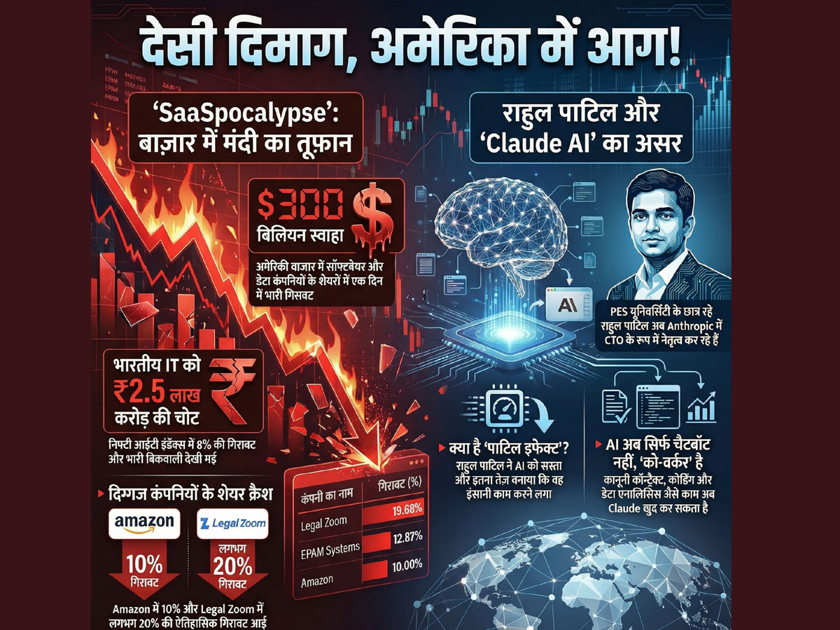 The Patil Effect Explained: टेक दुनिया में हाल ही में एक नया शब्द तेजी से चर्चा में आया है- 'SaaSpocalypse'. इसका मतलब है सॉफ्टवेयर-एज-ए-सर्विस यानी SaaS कंपनियों के लिए मुश्किलों का दौर. जब AI टूल्स इंसानों का काम खुद करने लगें, तो बड़ी-बड़ी सॉफ्टवेयर और IT सर्विस कंपनियों की जरूरत कम हो सकती है. यही डर निवेशकों के मन में बैठ गया और बाजार में भारी बिकवाली शुरू हो गई. इसका असर इतना बड़ा था कि भारतीय IT कंपनियों का करीब ₹2.5 लाख करोड़ का मार्केट वैल्यू कुछ ही दिनों में साफ हो गया.