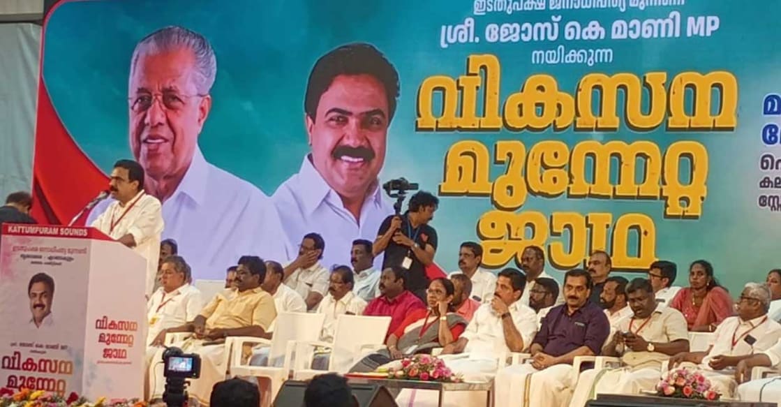 ‘‘എന്റെ സുഹൃത്തും സഹോദരനുമായ റോഷി അഗസ്റ്റിൻ താൻ വരുന്ന നിയമസഭാ തിരഞ്ഞെടുപ്പിൽ പാലായിൽ മത്സരിക്കുമെന്നാണ് പറഞ്ഞത്. അല്ലാതെ മത്സരിക്കേണ്ട എന്നല്ല. അത് ചിലർക്ക് പ്രശ്നമാണ്. രമേശ് ചെന്നിത്തല ഹരിപ്പാടും വി.ഡി.സതീശൻ പറവൂരും മത്സരിക്കുമെന്നു പറയുമ്പോൾ ഇവർക്കാർക്കും പ്രശ്നമില്ലല്ലോ. അപ്പോൾ ഞാൻ പാലായിൽ മത്സരിക്കുെമന്ന് പറയുമ്പോൾ എന്താണ് പ്രശ്നം? ഇതൊക്കെ വികസന മുന്നേറ്റ ജാഥയുടെ വിജയം കണ്ട് അത് ഇല്ലാതാക്കാൻ ശ്രമിക്കുന്നവർ ചെയ്യുന്നതാണ്’’, ജോസ് കെ.മാണി പറഞ്ഞു. ഇതിനു പിന്നാലെ തന്നെ ലക്ഷ്യമിട്ടാണ് പുതുപ്പള്ളിയിലെ പോസ്റ്റർ പ്രശ്നമുണ്ടായതെന്നും അദ്ദേഹം പറഞ്ഞു. താൻ മറുപടി പറയണമെന്നാണ് പറഞ്ഞത്. പിന്നെ പറഞ്ഞു ഒരു മാനസിക രോഗിയാണ് അത് ഒട്ടിച്ചത് എന്ന്. എന്നാൽ ഒട്ടിച്ച ആളല്ല, അത് ഒട്ടിക്കാൻ പറഞ്ഞുവിട്ടവരാണ് യഥാർഥ മാനസികരോഗിയെന്നും ജോസ് കെ.മാണി പറഞ്ഞു.