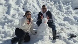 औली में स्नो मैन बनाकर फोटो खींचते पर्यटक। जागरण