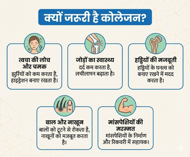 लाइफस्टाइल डेस्क, नई दिल्ली। कोलेजन एक नेचुरल प्रोटीन है जो शरीर की त्वचा, हड्डियों, मांसपेशियों और जोड़ो को मजबूती और फ्लेक्सिबिलिटी प्रदान करता है। यह स्किन की बाहरी लेयर को भीतर से सपोर्ट करता है और उसे हेल्दी, टाइट व ग्लोइंग बनाए रखता है। उम्र बढ़ने के साथ-साथ शरीर में कोलेजन का उत्पादन धीरे-धीरे कम होने लगता है, खासकर 30 की उम्र के बाद।